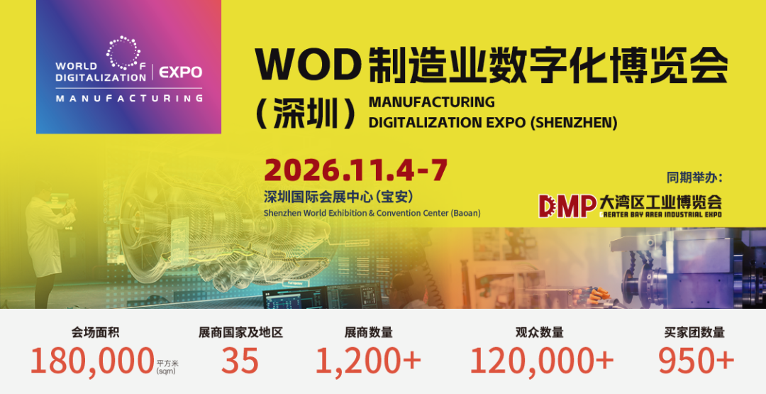 2025年11月8日,2025 WOD制造业数字化博览会(深圳)在深圳国际会展中心(宝安)8号馆圆满结束,作为聚焦粤港澳大湾区制造业数字化全场景的专业精品展会,本次展会联动沉淀 25 年的 DMP 大湾区工业博览会,以“制造业数字化转型、智能化改造和绿色化发展供需精准链接枢纽”为定位,吸引百余家数字化领军企业超2,000余名有采购需求的制造业数智化决策人和负责人参与,成功搭建起“全链条、全场景、全生态”的交流合作平台,为粤港澳大湾区破解“单点转型易、全链升级难”痛点注入强劲动能。