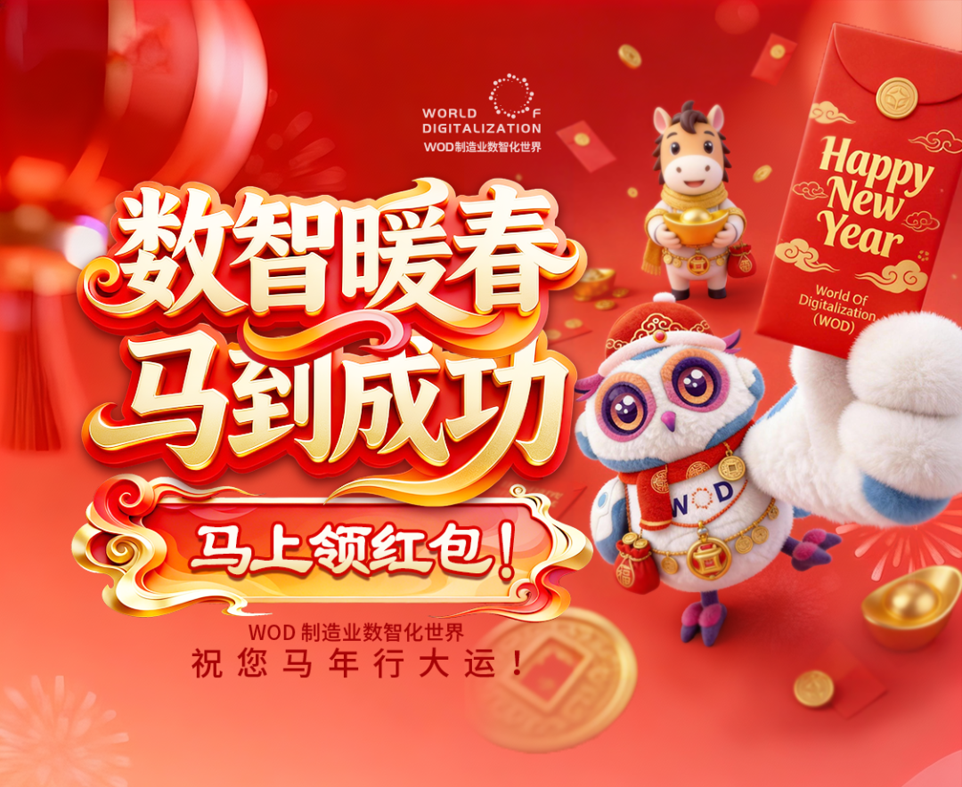 春临九州,马启新程!值此丙午马年新春之际,WOD 制造业数智化世界向所有深耕制造业数智化转型的伙伴们,致以最诚挚的新春祝福!愿大家新年万事顺遂、马到成功,在数智化转型的赛道上骐骥驰骋、智造腾骧!