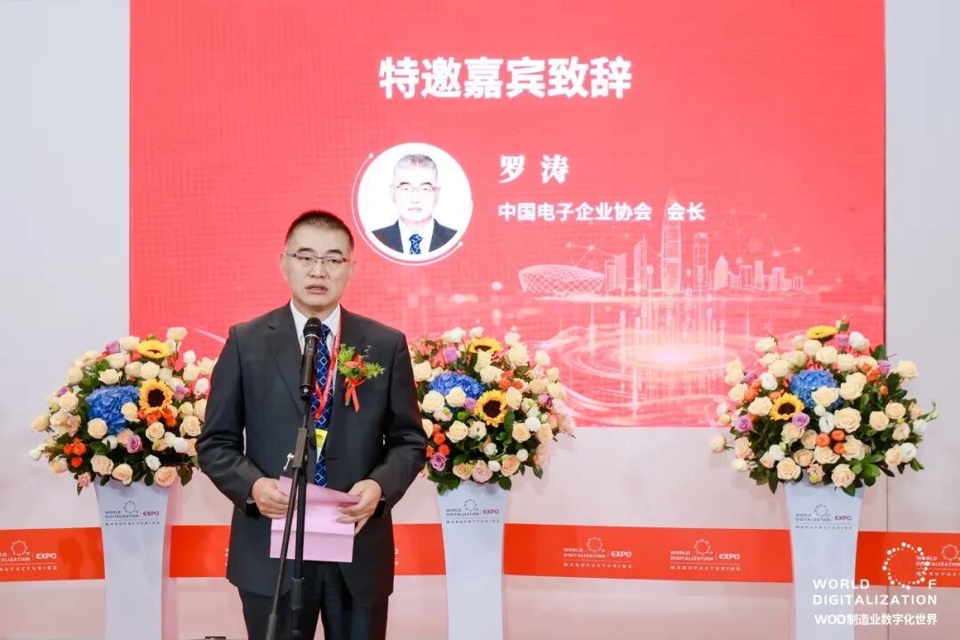 罗涛会长则从电子行业视角切入:“数字化是电子信息制造业必答题,协会搭建‘政企研用’ 平台,展会是转型关键载体,我们坚信数绿协同能助力我国向智造强国迈进。”