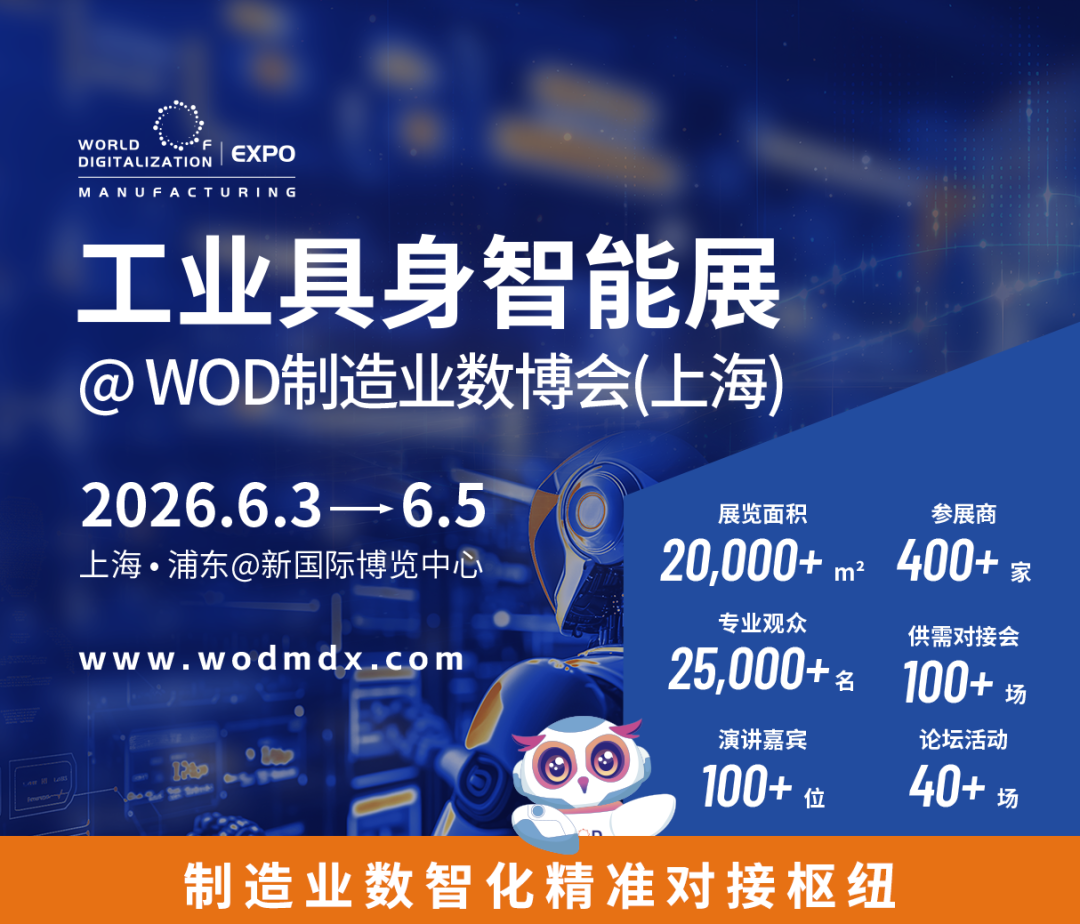 2026年6月3日-5日,WOD工业具身智能展将在上海新国际博览中心举办【同期举办2026WOD制造业数智化博览会(上海)】,展会现场打造工业具身智能“技术—设备—场景”生态闭环,帮助企业触达核心决策人群,对接真实制造业需求,加速技术商业化落地。